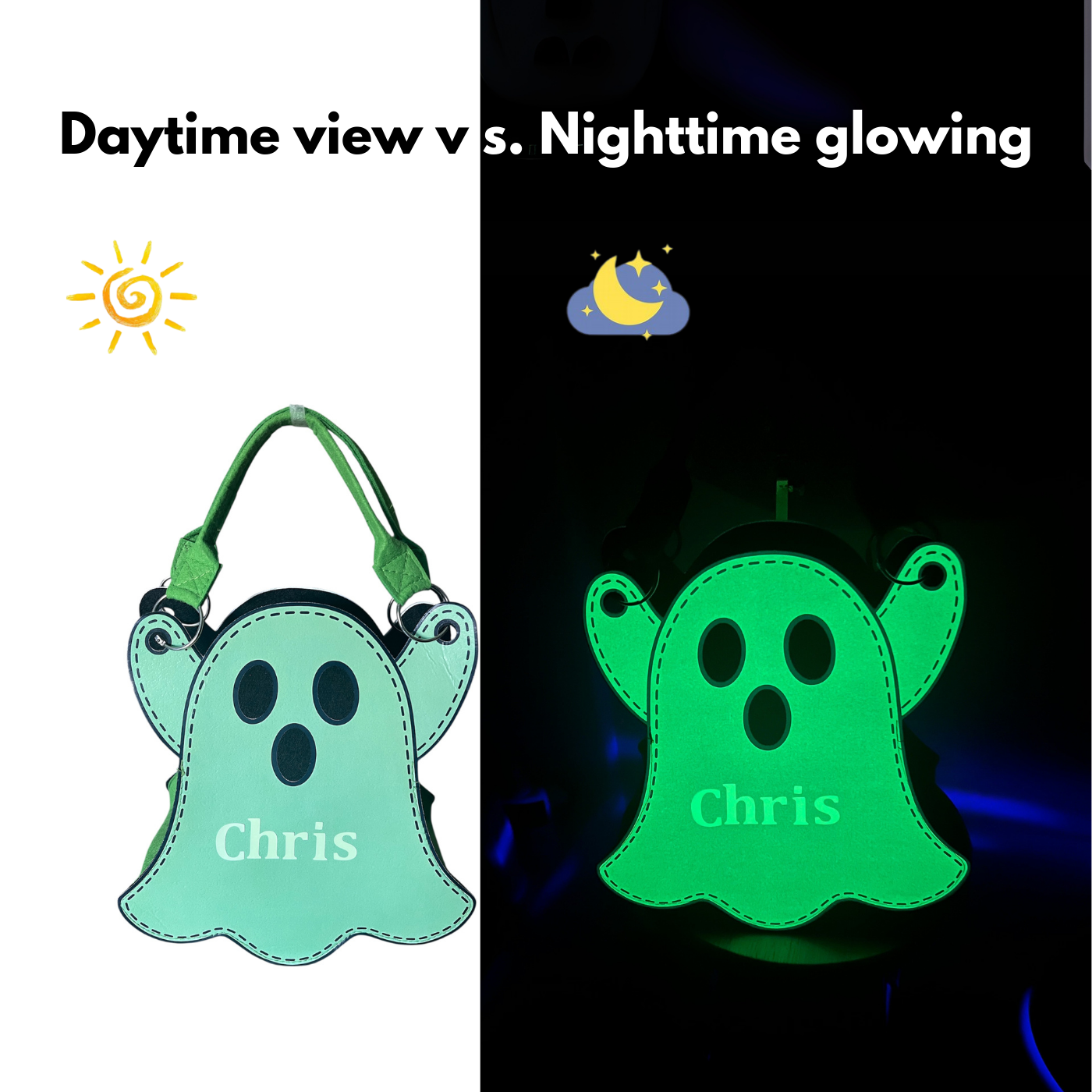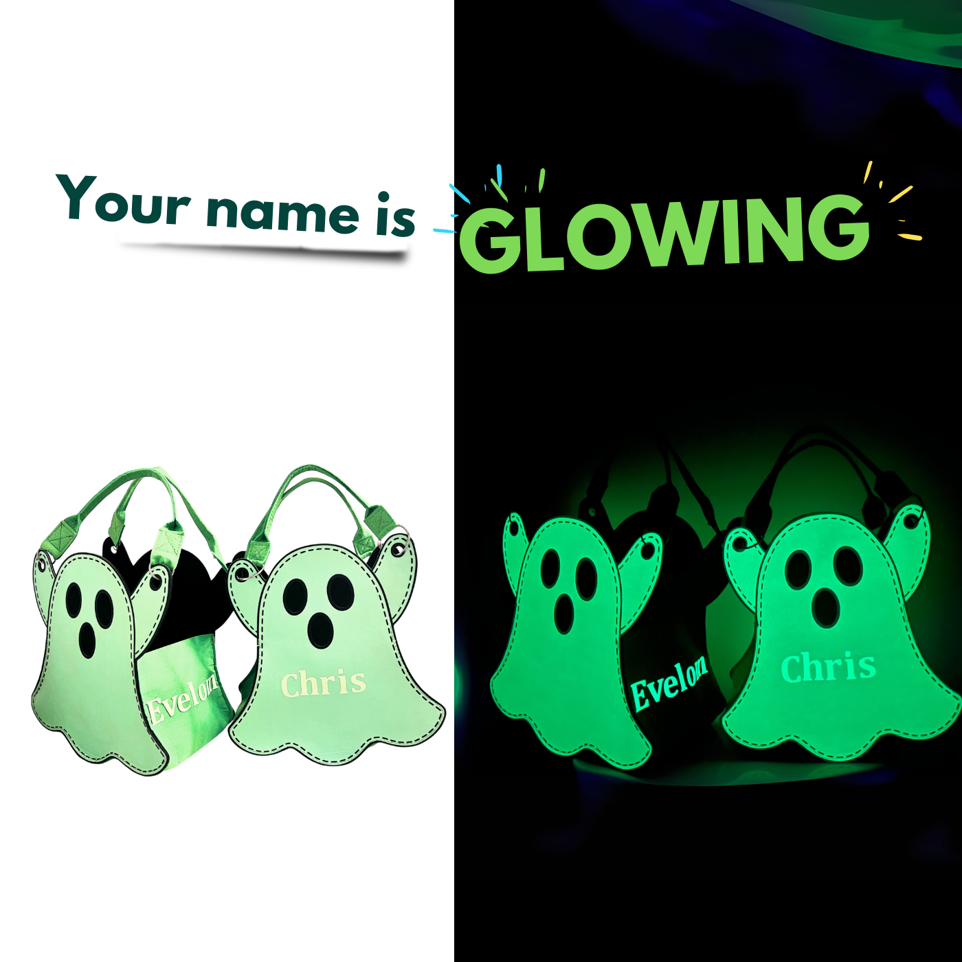 Personalized Glow-in-the-Dark Ghost Halloween Trick-or-Treat Bag for Kids – Custom Name Candy Tote